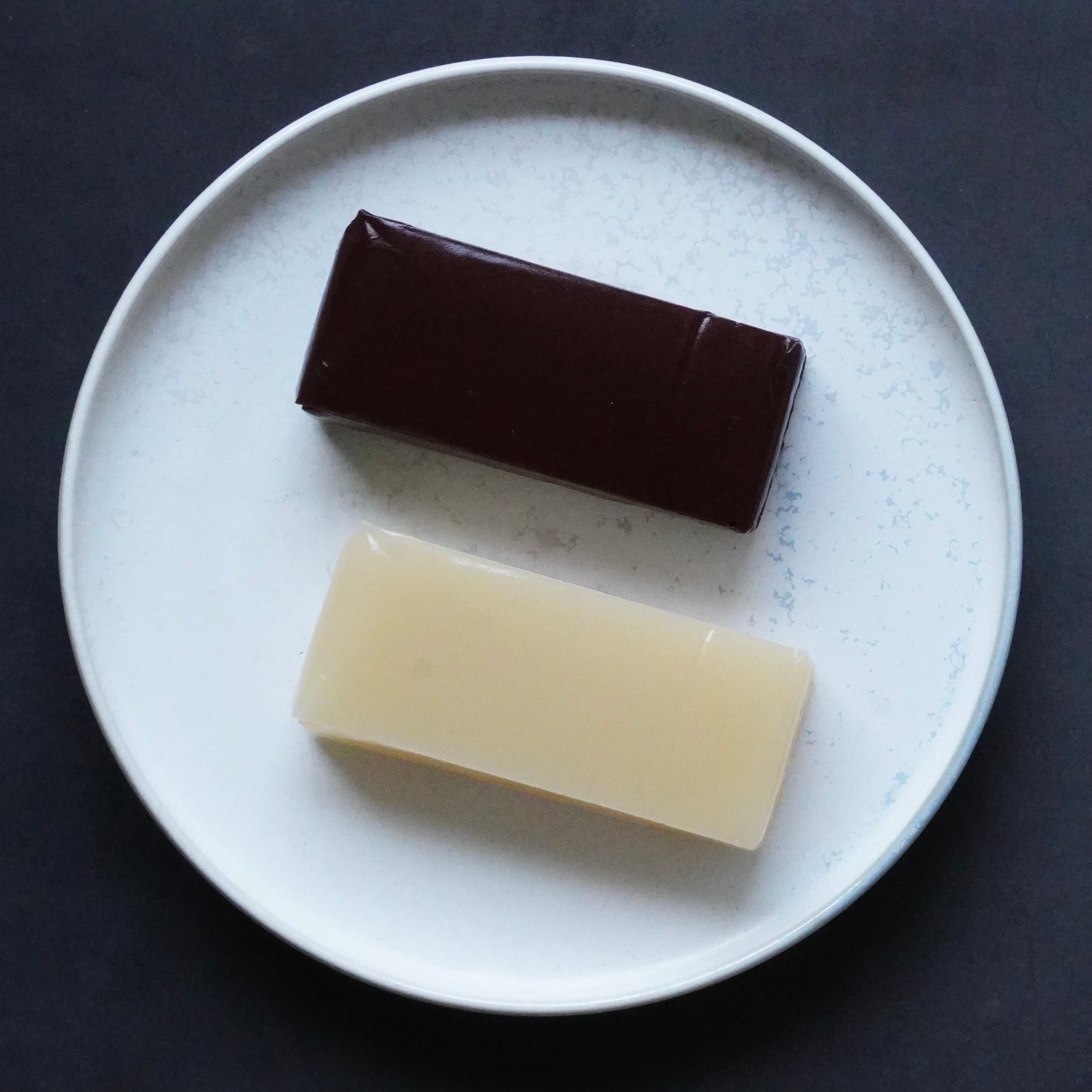こし餡と溶かしたチョコレートを練り合わせて、寒天で固めた、チョコレート風味の羊羹。