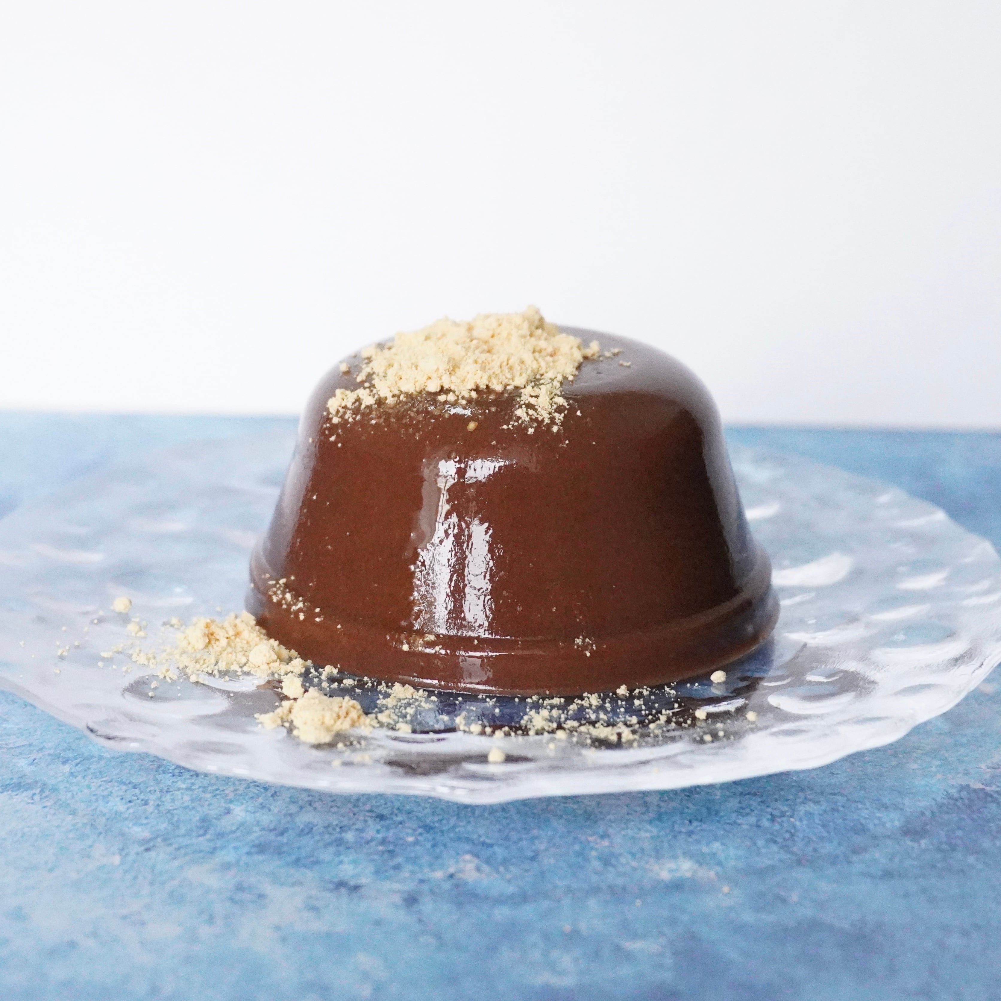 本わらび粉とはす粉を使ったリッチな口当たりのわらび餅に、溶かしたチョコレートを練り込んで風味づけしました。